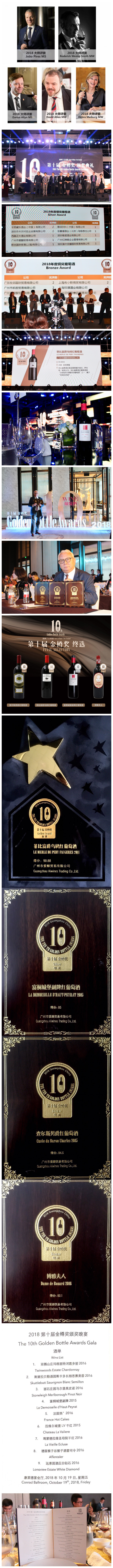 10月19日,第十屆金樽獎頒獎典禮在廣州康萊德酒店圓滿(mǎn)落幕。從2009年華麗啟程,葡萄酒業(yè)界的“奧斯卡”——金樽獎至今已走過(guò)十年芳華。十年的積淀,十年的成長(cháng),金樽獎已成為國內最專(zhuān)業(yè)、最權威、規模最大、影響力最強的葡萄酒盛事。